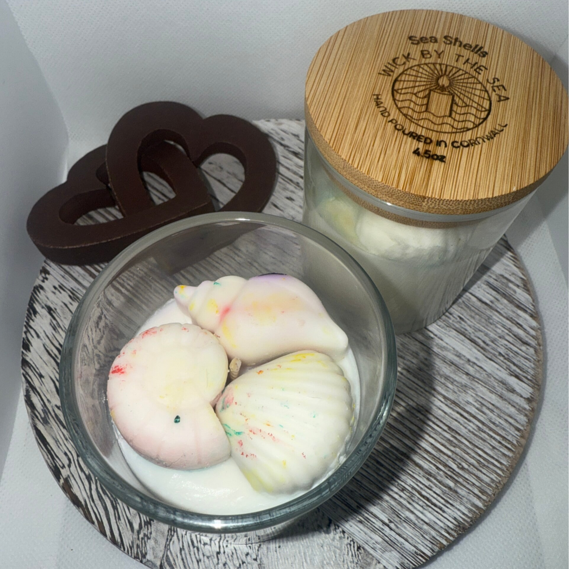 Sea Shells is a stunning soy wax candle Ideal for those who cherish the tranquility of the seaside, this candle is a delightful addition to any home decor, harmonizing with the themes of the seaside there are two choices of scent to choose from sea breeze or coconut island the candle is a beautiful addition to any area with the gorgeous shells design in a glass jar with a wooden lid.