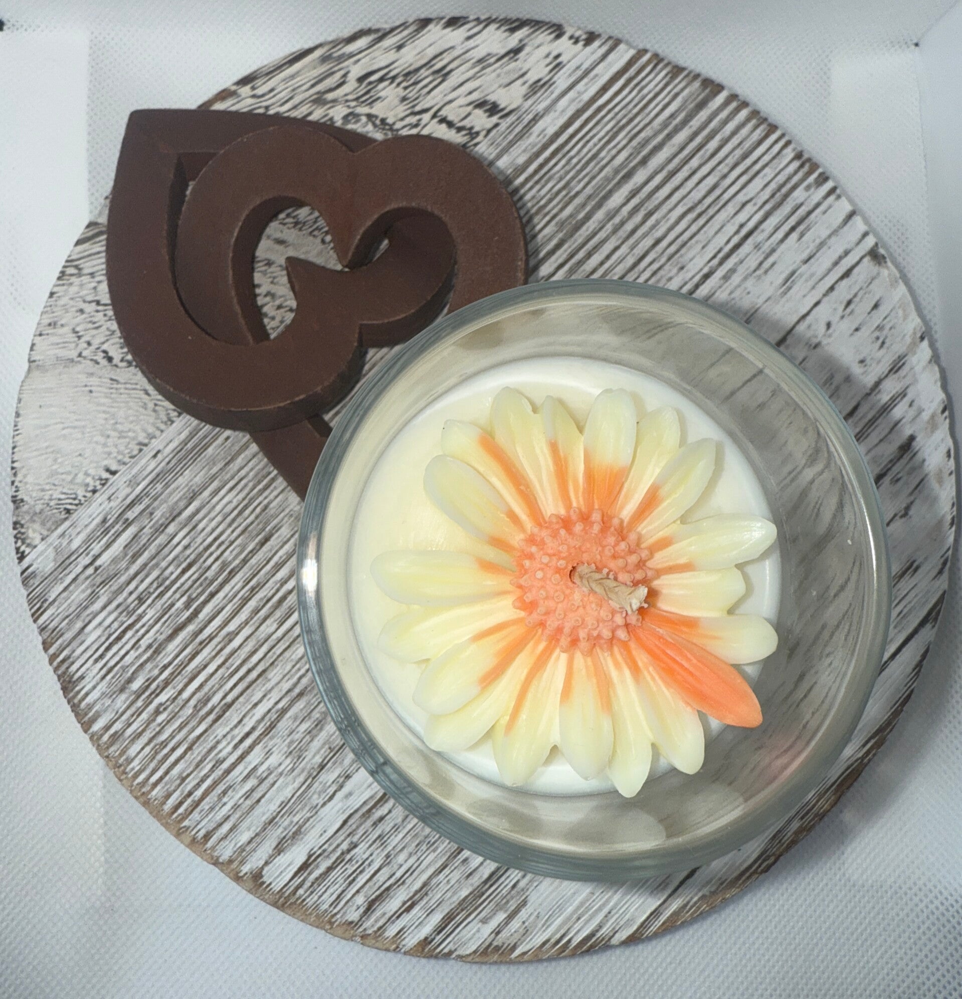 Sunshine Daisy is a beautiful and luxurious addition to your home décor that mixes the delicate beauty of daisies with the fresh aroma of coconut and vanilla, fresh linen, Vanilla or we also do unscented for those who do not like scented, these exquisitely detailed candles are handcrafted, they provide a sophisticated touch to any area with the gorgeous daisy design in a glass jar with a wooden lid so once candle has finished you can reuse the jar, presented in a window box.
